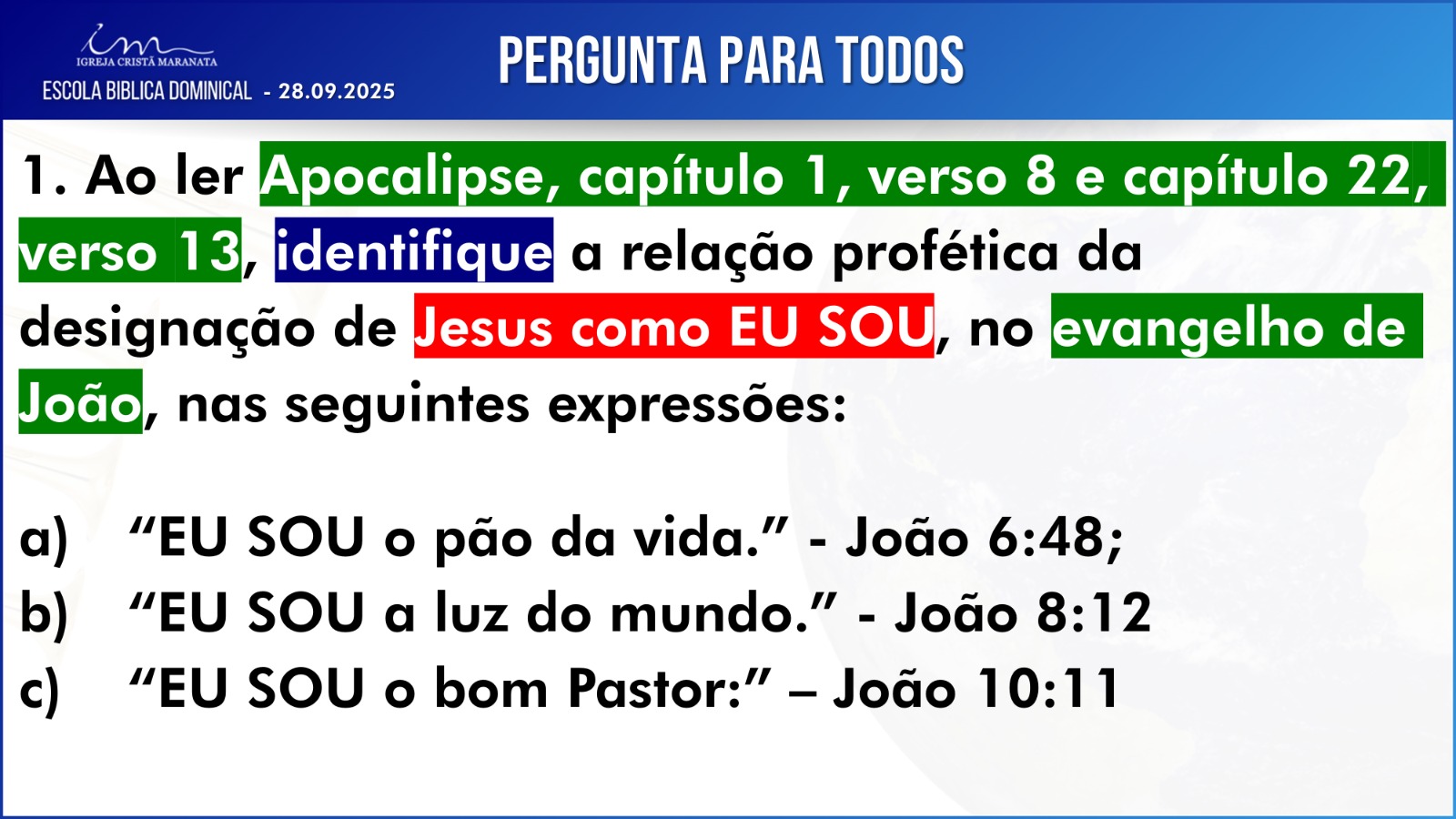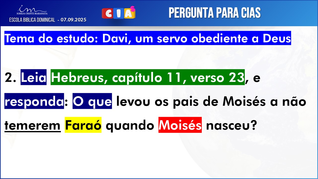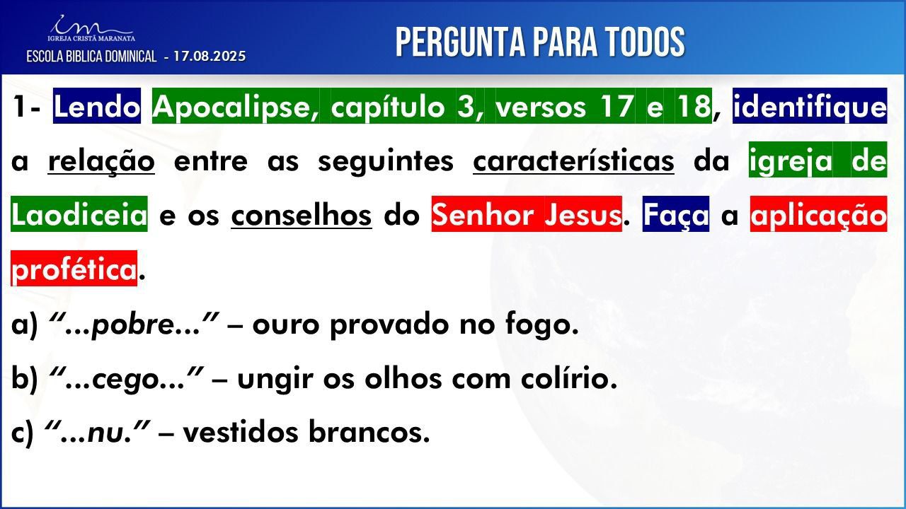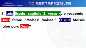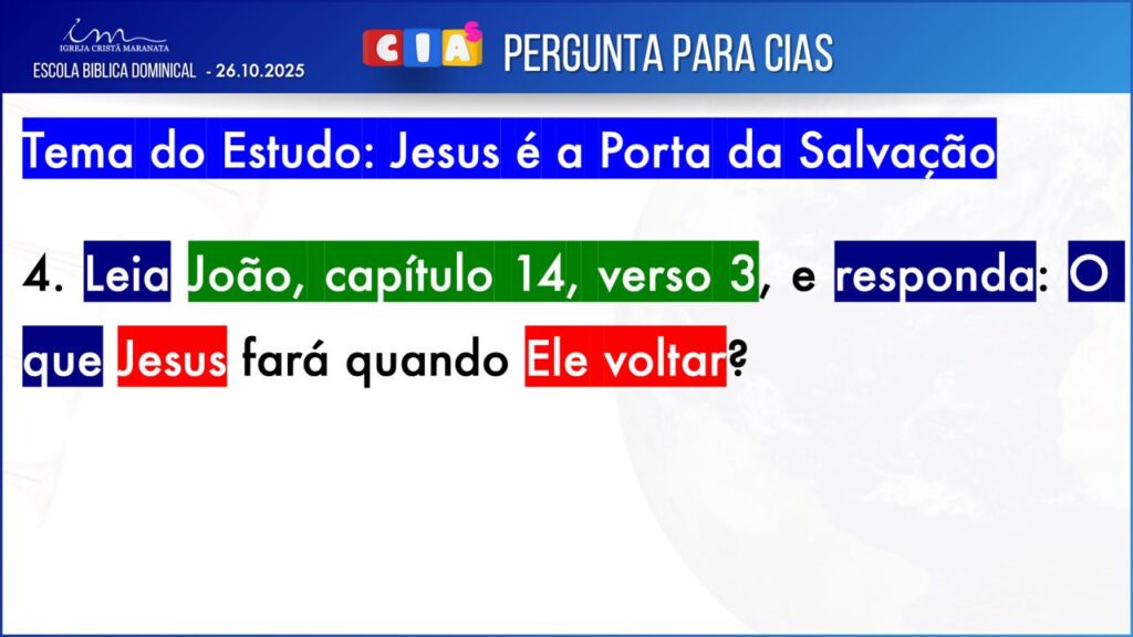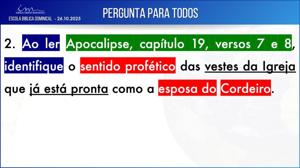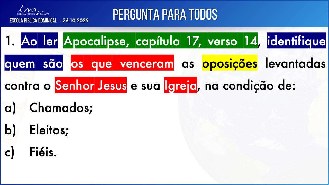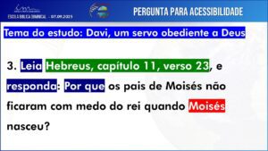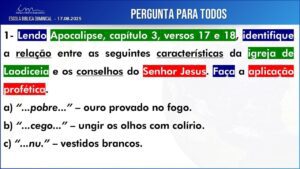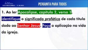 Observação: As perguntas da EBD ficam a critério da Igreja, quanto à forma de envio das respostas.
