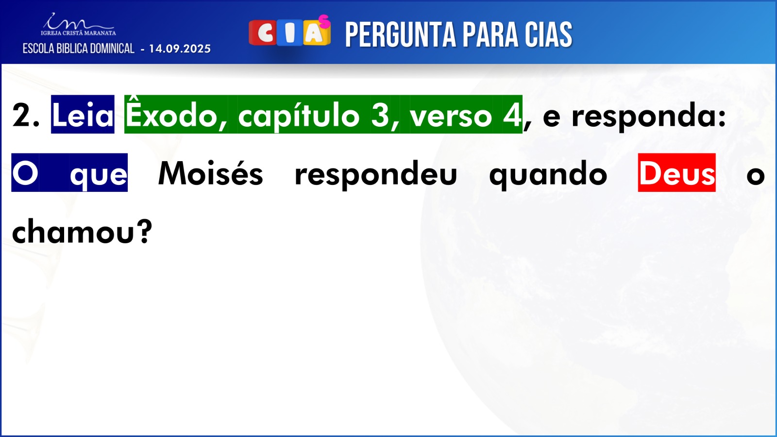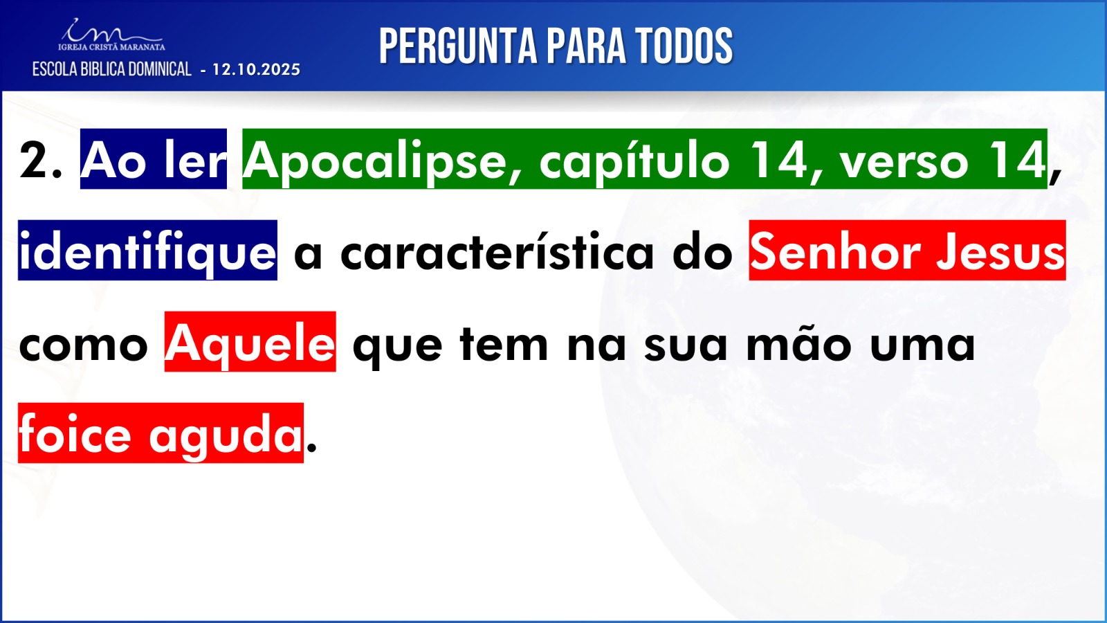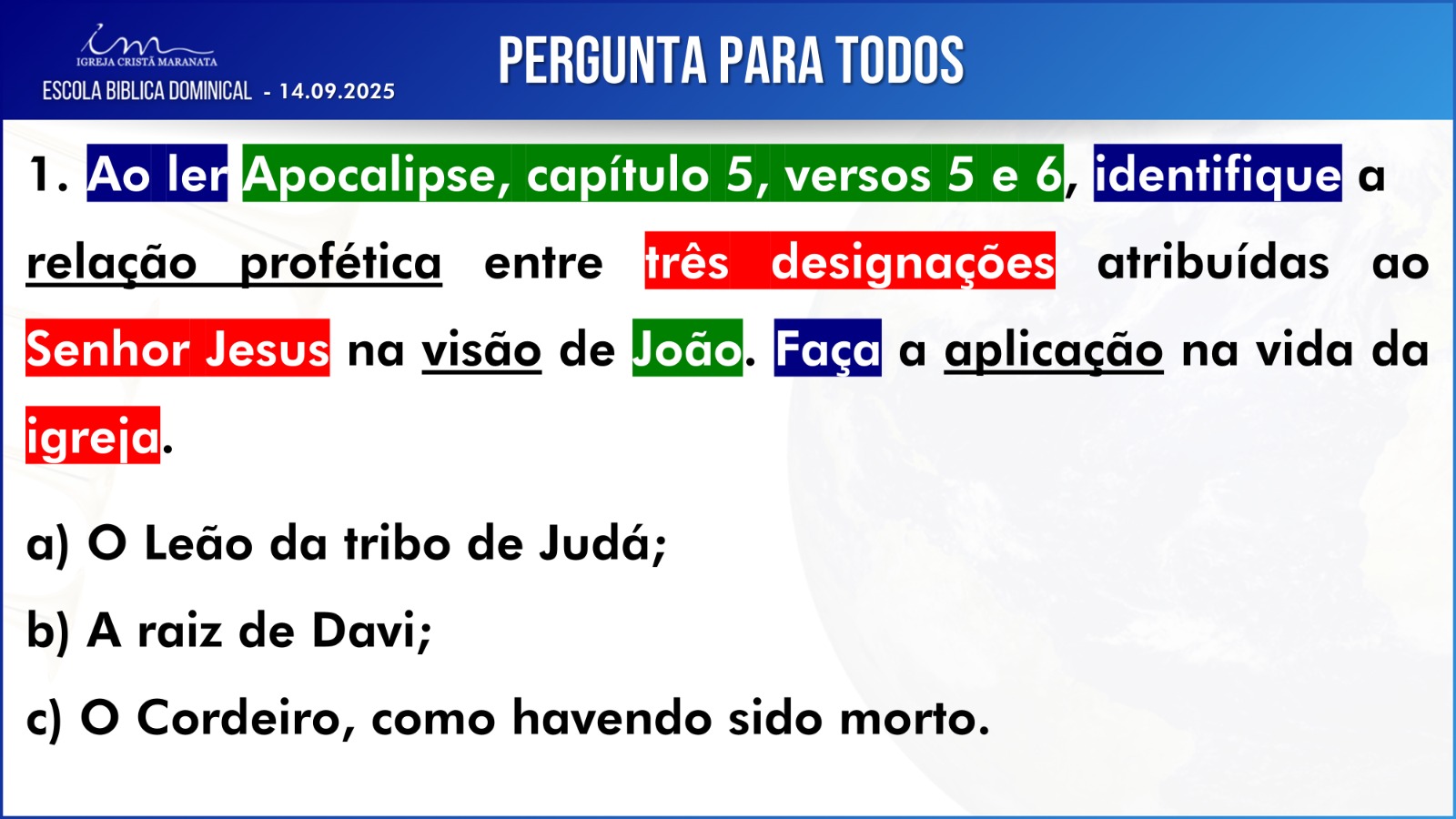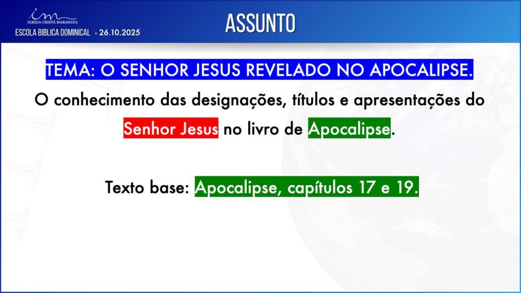 Observação: As perguntas da EBD ficam a critério da Igreja, quanto à forma de envio das respostas.
