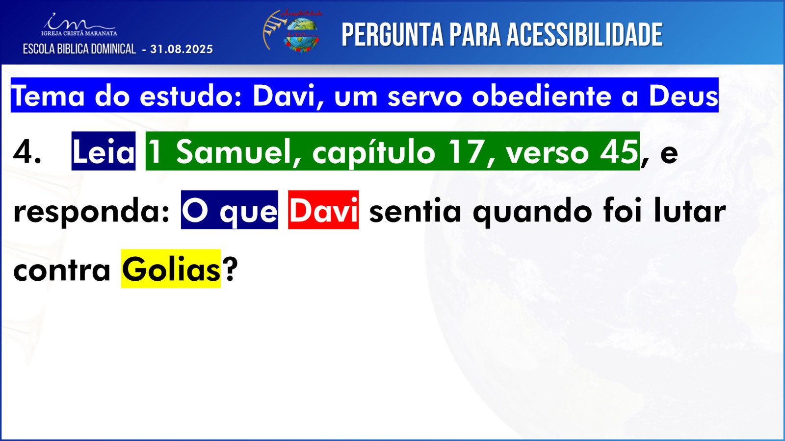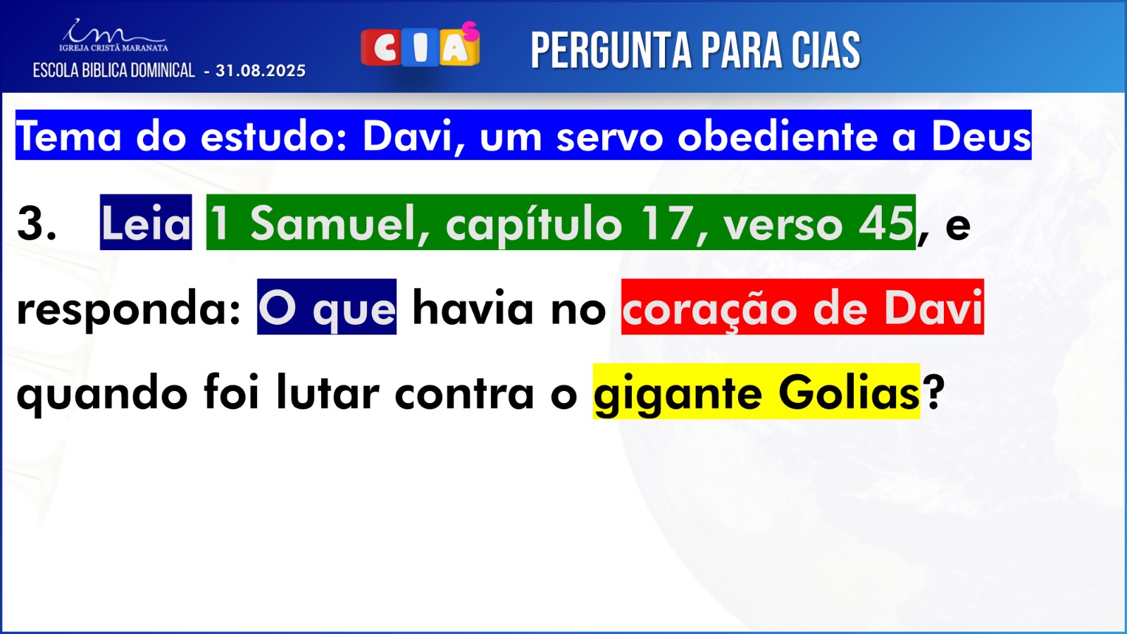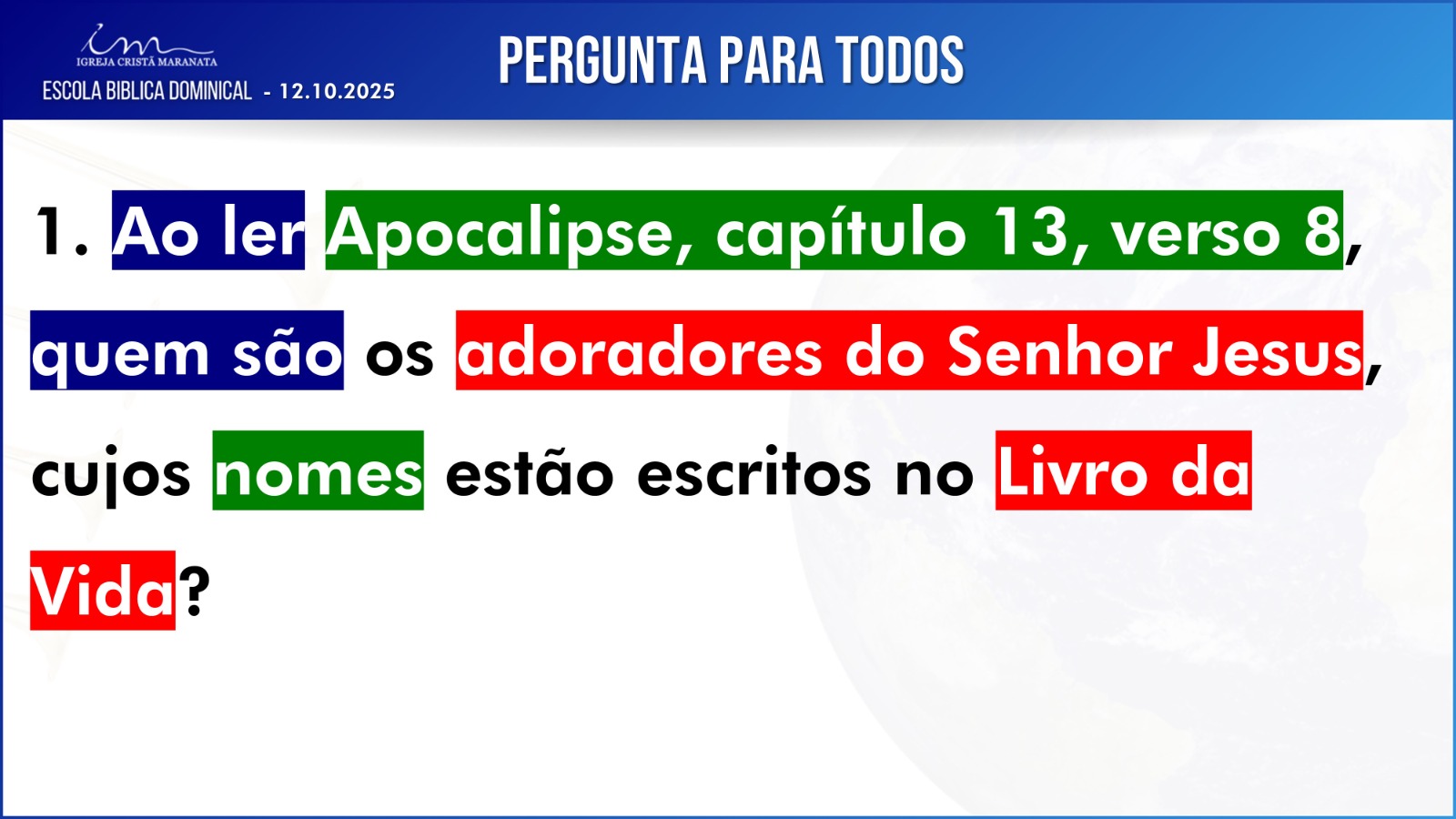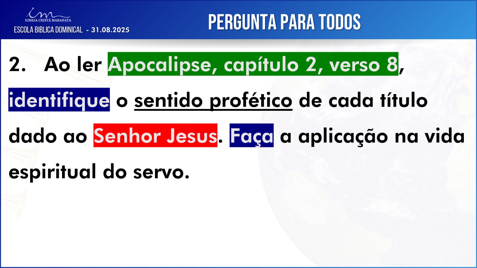 Observação: As perguntas da EBD ficam a critério da Igreja, quanto à forma de envio das respostas.