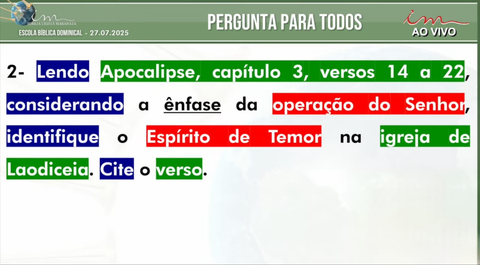 Perguntas para a Próxima EBD – 20/07/2025