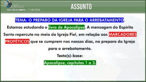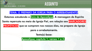 Comunicamos aos Pastores e Igrejas que teremos nesta segunda-feira, dia 29/07/2024, às 20h00 um Culto com o tema sobre às Participações da EBD.